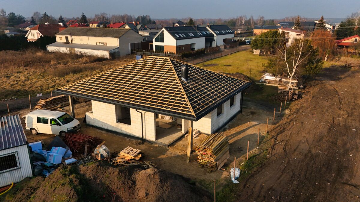 Więźba i Pokrycie Dachowe – realizujemy kompletne prace dekarskie wraz z systemem odprowadzania wody, zamykając budynek i chroniąc go przed wpływem warunków atmosferycznych.